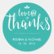 Vintage und rustikale dekorative Skript Schriftart Hochzeit danke Ihnen Aufkleber. Elegantes und klassisches Design türkisfarben-weiße Gastgeschenk Hochzeit Aufkleber. Klassische Gastgeschenk Hochzeit, Brautparty Geschenketikett, Geburtstagsparty, Verlobung Dinner, Babydusche und vieles mehr. Die Hintergrundfarbe kann auf das gewünschte Thema geändert werden.