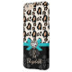 Ein niedliches und girly Leopardstellenmuster im Gold, im Schwarzen und in den Cremefarben. Ein heller Blickdruckentwurf des blauen Bandes des Türkisaqua mit Imitat, das Herz "den Diamanten formte", der durch den Solitaire mit einer Kruste bedeckt wurde, der auf dem Bogen bling ist, macht dieses Extragirly und stilvoll. Er kann mit Ihrem Monogramm besonders angefertigt werden und zuerst und personalisiert mit Ihrem Namen im Gold auf dem schwarzen Hintergrund mit einem subtilen Damastmuster. Bitte merken Sie, dass dieser Entwurf flach gedruckt wird und wie in dem Vorbetrachtungsbild gezeigt schauen wird. Keine dreidimensionalen Verschönerungen sind diesem Entwurf hinzugefügt worden. Grafik © Chrissy H. Studios, LLC. Alle Rechte vorbehalten.