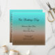 Tropisches Gefälle türkis / aqua zu braunen Hochzeitskartentur. Drucken Sie auf beiden Seiten mithilfe der Vorlagen. Füllen Sie alle Zeremonie Informationen über helles Meer und Sandfarben. Diese quadratische Karte wird mit weißen Umschlägen geliefert.