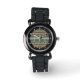 Uhr, Vintage Männeruhr mit schwarzem Lederarmband