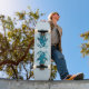 ein dekorativer Medientinten- und -Gouacheentwurf von zwei Stammes- Tätowierungshaifischen oder -Schwertwalen des Türkises auf einem Skateboard