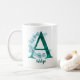 Türkis Letter Ein blauer Eukalyptuskranz Kaffeemaschine Tasse. Schöner Buchstabe A mit Eukalyptus-Blattwerk. Kann Vor- oder Nachname oder löschen, wenn nicht gewünscht. Gutes Geschenk für Braut oder Begleiter.