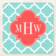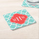 Türkis Marokkanisch #5 Korallenrot 3 Initialmonogr Rechteckiger Pappuntersetzer