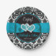 Diese personalisierten und romantischen Teller für Hochzeitsfeiern eignen sich hervorragend zum Empfang, Brautparty oder zum Probe-Dinner für Kuchen oder Leckereien. Diese runden, schwarz-weißen Damast-Teller sind sicher ein unvergesslicher Treffpunkt für Ihre Gäste und eine weitere Möglichkeit, während Ihrer Hochzeitsfeiern einen zusammenhängenden Look behalten. Der rund gestaltete Bereich dieser Teller hat ein türkisfarbenes Band und ein Bugbild, in der Mitte sind Herzensbilder miteinander verbunden. Über dem Band wird das Wort "Enjoy!" in weißem Schriftsatz gedruckt. Unter dem Band sind die Namen des glücklichen Ehepaares und das Hochzeitsdatum in Türkis und Weiß auf schwarzem Hintergrund gedruckt. Wenn Sie weitere passende Artikel benötigen, schicken Sie bitte eine E-Mail an niteowlstudio@gmail.com und schauen Sie sich Ihre Spam-/Junk-Ordner an, um meine Antwort zu erhalten, oder benutzen Sie die Zazzle-Chat-Funktion, um mich zu kontaktieren.