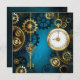 Türkis, strukturiert, Steampunkhintergrund mit Messing- und Goldgetrieben, Silberschlüssel und Uhr. Steampunkstil.