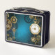 Türkis-Steampunkirche Hintergrund mit Gears Metall Brotdose
