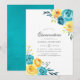 Türkis und gelb - aquamarin und Zitronenblumen Quinceanera Einladung mit Akzenten von Korallen mit aquarelle Blume und Blätter.