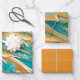 Türkis und Rost Fall Wasserfarben handbemalt Geschenkpapier Set