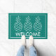 Dieses niedliche Doormat umfasst drei klassische Ananas in Weiß auf einem soliden türkisfarbenen Hintergrund. Personalisieren Sie Ihre Auswahl an speziellen Nachrichten.