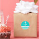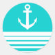 Türkisblaue Aufkleber mit Silhouette des Schiffsankers. Aqua-blaue und weiße Streifen vervollständigen die Dichtungen für Strand- oder Wassersport-Party. Anpassbare Hintergrundfarbe.