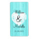 Türkisblaues Herz Hochzeitsweinflaschen Etiketten. Personalisierte Weinetiketten mit verwittertem Holzpaneel und Vintagem Herz. Stilvolle Skripttypografie für Namen von Braut und Bräutigam. Verwenden Sie als klassische Tischdekoration oder danken Sie für die Gäste des Party. Enthält Name oder Monogramm plus Heiratsdatum. Romantisches Landchic Design mit rustikalem Druck. Auch gut für Hochzeiten zum Thema Strand.