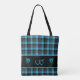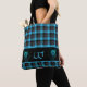 Türkisblaue Karierte Pfauenfedern Monogramm Tasche