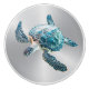 Eine wahnsinnig detaillierte, schimmernde Schildkröte auf einem silbernen Hintergrund.