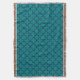 Türkisblaues morrokanisches Gittermuster wirft Decken. Extravagante Trellis Quarrefolie Dekoration. Anpassbare Hintergrundfarbe. Elegantes Design für Sofa, Sofa oder Bett. Chic Wohngestaltung und Accessoires für Ihr stilvolles Interieur. Benutzerdefinierter Hintergrund