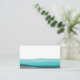 Ein künstlerisches modernes Design mit türkisfarbenen und waldgrünen Wellen mit Ihrem Namen und Beruf in weißer Schrift.