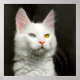 Weiße türkische Angorakatze mit seltsamen Augen (Heterochromie), die unter den Angoras häufig vorkommt. Die türkische Angora ist eine Hauskatze-Rasse. Türkische Angoras sind eine der uralten, natürlichen Katzenrassen, die aus der zentralen Türkei in der Region Ankara stammen. Die Rasse wurde bereits im 17. Jahrhundert dokumentiert und wird als Ursprung der Mutationen für die Färbung des weißen und langen Haars angesehen. Die Rasse wird manchmal auch einfach als Angora oder Ankara Katze bezeichnet.