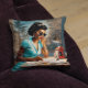 Mit unserem Kissen "Turquoise Tranquility" können Sie die ruhige Eleganz der Vergangenheit bewundern. Dieses exquisite Stück bringt Sie in das goldene Zeitalter des Glamours und zeigt eine gediegene Schwarze in klassischer Sonnenbrille, die die Raffinesse des Vintagen Stils verkörpert. Dieses Kissen mit Set vor dem Hintergrund von Palmen und einem lebhaften türkisfarbenen Ambiente verkörpert das lebendige Wesen einer vergangenen Zeit. Ideal für diejenigen, die die raffinierteren Details des Retro-Chic schätzen, fügt es eine Touch von zeitloser Schönheit in jedem Zimmer. Die aquamarin-blauen Farbtöne werden durch die Wärme eines tropischen Ambientes ergänzt, wodurch es sich zu einem idealen Akzent sowohl für moderne als auch für Vintag inspirierte Innenräume entwickelt.
