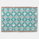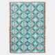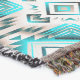 Dieses Design zeichnet sich durch ein geometrisches Muster aus, mit einem sich wiederholenden Motiv aus Diamantformen mit verschwommenen, gefederten Kanten, die nach außen strahlen. Der Gesamteffekt verbindet Symmetrie, Energie und Tiefe - ein Gleichgewicht zwischen Stammesgefühl und moderner Geometrie in Türkis, Grau und Creme.