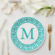 Ein helltürkisfarbener runder griechischer Tastendruck für Ihr Monogramm. Sie können den Stil und die Größe des Schriftartes anpassen. Erstellen Sie eigene Teller für Ihre Veranstaltung. Sie können auch die Hintergrundfarbe ändern.