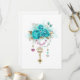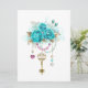 Der goldene alte Schlüssel mit trendigen türkisfarbenen Rose, die mit Blätter aus Weißgold, Rosa und Blau geschmückt sind. Modische Farbe. Türkisfarbene Rose. Weißes Gold. Blaue Krawatte.
