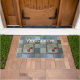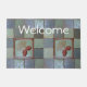 Dieses Welcome Doormat ist im Design von Kunst und Kunsthandwerk Kacheln gemacht. Es umfasst Kacheln verschiedener gedämpfter Grüntöne und Kupfer-Kiefernzapfen. Das Bild besteht aus Kacheln, die für Kamine vom Tile Maker Fay Jones Day hergestellt wurden.