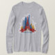 Türme der Zeit: Das Bild ist eine lebendige und auffällige Komposition, die die ikonischen Sehenswürdigkeiten mit einem modernen, abstrakten Stil verbindet. Im Vordergrund steht der rote Eiffelturm, dessen unverwechselbare Silhouette sofort erkennbar ist. Hinter beiden Türmen erheben sich zwei blaue Türme: der Brooklyn Tower und das Empire State Gebäude. Diese ikonischen Strukturen werden in einer vereinfachten, geometrischen Weise dargestellt, was das abstrakte Erscheinungsbild des Bildes verstärkt.