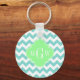 Turq / Aqua, Zickzack Minze 3 Initialmonogramm Schlüsselanhänger
