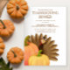 Dinde de coin arrondie moderne avec citrouille Fall Thanksgiving Invitation avec une mignonne dinde avec citrouilles orange sur un arrière - plan blanc. Retournez notre invitation d'action de grâce contemporain pour un dos brun coordonné. Belle et unique invitation pour votre fête de Thanksgiving.
