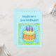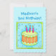 Célébrez la 3ème fête d'anniversaire d'une fille avec cette invitation personnalisée avec son nom et "3ème anniversaire" sur le devant et toutes les informations de fête sur le côté arrière de l'invitation. Cette invitation créera un joyeux anniversaire avec l'art mignon et fantaisiste d'un gâteau d'anniversaire vert citron et orange avec trois bougies roses chaudes. Une bordure vert citron entoure le gâteau et l'arrière - plan bleu aqua turquoise qui est rempli de cercles éblouissants. L'invitation a un arrière - plan bleu turquoise à l'avant et à l'arrière. Le gâteau d'anniversaire est également à l'arrière avec l'information de la fête. Cet art original est de Phyllis Dobbs. Entièrement personnalisable et peut être customisé pour un autre âge pour une fête amusante. Coordonner avec les timbres et autres produits qui correspondent.