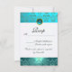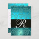 TURQUOISE AQUA BLEU BLACK DAMASK MONOGRAM RSVP