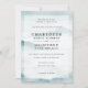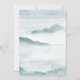 Elégante invitation de mariage avec une scène de paysage couleur bleue turquoise avec des montagnes fumées brumeuses.