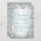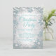 Élégante flocons de neige argent et bleu turquoise invitations à la fête de Noël avec de beaux flocons de bijoux turquoises bleu et argent sur un turquoise étincelant bleu et un arrière - plan à cordes clair. Cette belle invitation de fête de Noël aux flocons bleus est facilement customisée pour votre fête ou événement en ajoutant simplement vos détails. Cette élégante fête de Noël en flocon bleu turquoise est facilement customisée pour une fête de vacances.