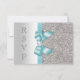 Cartes de réponse plates personnalisées pour RSVP formel / invitations pour tout événement - mariages, baby showers, fête d'anniversaire, sweet 16, célébrations de Quinceanera, fiançailles, douche de mariée, etc. Cartes de réponse doubles faces élégantes et personnalisées de couleur argent et sarcelle / turquoise avec un motif brillant imprimé pailleté, strass, sequins, noeuds et rubans vectoriels brillants et jolis, image stylée imprimée diamants bling bijoux et texte gris foncé. Ces RSVP argent et sarcelle classe et glamour, sont décorés des deux côtés. Belles cartes doubles faces chic, tendance, moderne avec éclat et glamour. Veuillez noter : Toutes les invitations sur Zazzle ont des images imprimées plates. J'ai des produits assortis dans ma boutique. Le texte, la police et les couleurs de la police sont tous personnalisables pour répondre à vos besoins. Si vous avez besoin d'aide pour personnaliser votre produit, veuillez me contacter via ma boutique. Je serai ravi de vous