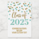 Graduation Party Custom Mini Weinflaschen Etiketten Klasse von 2025 mit türkis und goldene Glitzer Muster Konfetti.