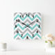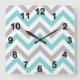 Turquoise, Gray, Wht Large Chevron ZigZag Pattern Quadratische Wanduhr