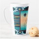 C'est un "One of a Kind" unique Mug en latte Kokopelli Sud-Ouest! Il présente un Kokopelli Turquoise jouant la Flûte avec des notes de musique dansant sous le soleil sur un Arrière - plan turquoise et orange....Entouré d'une frontière sud-ouest en Turquoise, Blanc et Rouille! Design D'Art Original Par L'Artiste Kerry Miller.