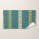 Design multimotif en turquoise, citron et chaux. Disponible en set de serviettes, tapis de bain et rideau de douche. Un ajout coloré à votre bain à domicile.