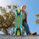Turquoise Orange Black Radial Pattern Flip Flops Skateboard