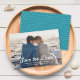Türkisfarbene Waves Full Foto Save the Date Karte hat türkisblaue Wasserwellen Muster zurück. Personalisieren Sie es, indem Sie den Platzhalter-Text ersetzen und das Foto für die Auswahl/den Platzhalter durch Ihr eigenes Foto ersetzen. Für weitere Optionen, wie zum Beispiel den Schriftart zu ändern und ihn zu vergrößern oder zu verändern, klicken Sie auf den Button "Anpassen". *Bitte beachten Sie, dass das Zazzle-Wasserzeichen, das in der Zoomvorschau angezeigt wird, NICHT auf dem gedruckten Endprodukt erscheint. © Rosewood and Citrus