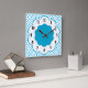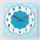 Turquoise White Flower Retro Pattern Wall Clock Quadratische Wanduhr