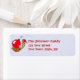Niedliche, lustige Schildkröte in der Weihnachtsmannmütze, die auf einem roten Weihnachtsbaumschmuck auf diesem Rückkehradressen-Label festhält. Personalisierbar.