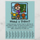 Tutoring kann eine gute Möglichkeit sein, zusätzliches Geld zu verdienen. Dieser bezaubernde, auffällige Flyer eignet sich hervorragend, um sich in lokalen Geschäften, Kirchen, Synagogen, Bibliotheken oder Parks niederzulassen. Schneiden Sie zwischen den Kontaktdaten unten, sodass die Leute einfach Ihre Nummer abreißen können, damit sie nicht vergessen! Vollständig anpassbar. Oder vielleicht bevorzugen Sie meinen neuen "verbesserten" Flyer?