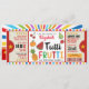 Fêtez le deuxième anniversaire de votre petit avec notre billet d'anniversaire Aquarelle Tutti frutti Invitation. Cette invitation à l'anniversaire de frutti deux tti comprend des fruits à l'aquarelle dessinés à la main, de la pastèque, des oranges, de l'ananas, de la banane, de la cerise, de la fraise et de la poire sur la couleur arc-en-ciel admettent un laissez-passer de billet d'entrée. L'arrière présente le nom de votre petit et le texte de tutti frutti avec l'illustration de l'ananas, de la cerise et de la pastèque sur un arrière - plan de couleur festif. Cet anniversaire à thème de fruits est parfait pour votre Twotti Fruitti Invitation d'anniversaire, invitations d'anniversaire fruité, fête de piscine de fruits d'été, la plage fête de deuxième anniversaire