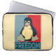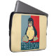 Ein Design im Stil des berühmten Obama hoffen Poster zeigt Tux, das offizielle Linux Maskottchen mit dem Slogan Freedom, denn Linux ist sowohl frei wie in Bier und in der Sprache. Das Tux-Bild wurde von Andrew McGown entworfen und als Inkscape SVG von Josh Bush nachgebaut und ist unter Creative Commons Lizenz CC-BY-SA veröffentlicht, siehe http://git.kernel.org/cgit/linux/kernel/git/torvalds/linux.git/tree/Documentation/logo.txt?id=8032b526d1a3bd91ad633dd3a3b5fdbc47ad54f1