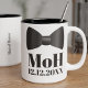 Geeignet für Ehrenmann oder Trauzeugin, fügen Sie ihre Initialen und Ihr Hochzeitstag zu dieser klassischen Schwarz-Weiß-Kaffee-Tasse hinzu
