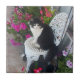 Tuxedo Cat Cute with Pretty Flowers Black Cats Fliese