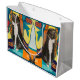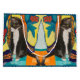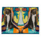 Folk Art Tuxedo Cat und mehrfarbige bestickte Fenstervorhänge