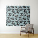 Niedliche schwarz-weiße Tuxedokatzen, die ihr Geschäft machen. Ein lustiges Muster auf einem mittelblauen Hintergrund. Originelle Kunst von Nic Squirrell.