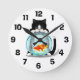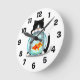 Tuxedo Cat with Fish Clock Runde Wanduhr