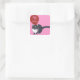 Peinture d'un mignon chat tuxedo noir et blanc fait en pointillisme, montré par un ballon rouge, avec le message, Joyeux anniversaire, est imprimé sur des autocollants personnalisés. Vous pouvez facilement customiser le texte sur le formulaire modèle.